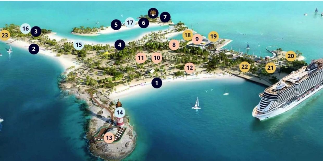 3. Paradise Sands Beach 10. Food Trucks 16. The Spa At Ocean Cay 20. Discover Scuba